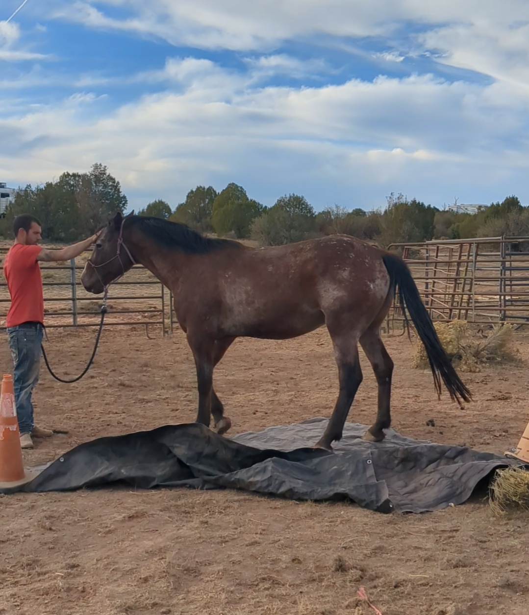 He comes with 90 days of professional training with K-1 Performance Equine Services, lunges both ways, saddles with ease, ground drives no problem, rides soft and supple, handles new places with confidence, his Smooth W/T/L, starting to really know his cues, and stays focused on his rider!